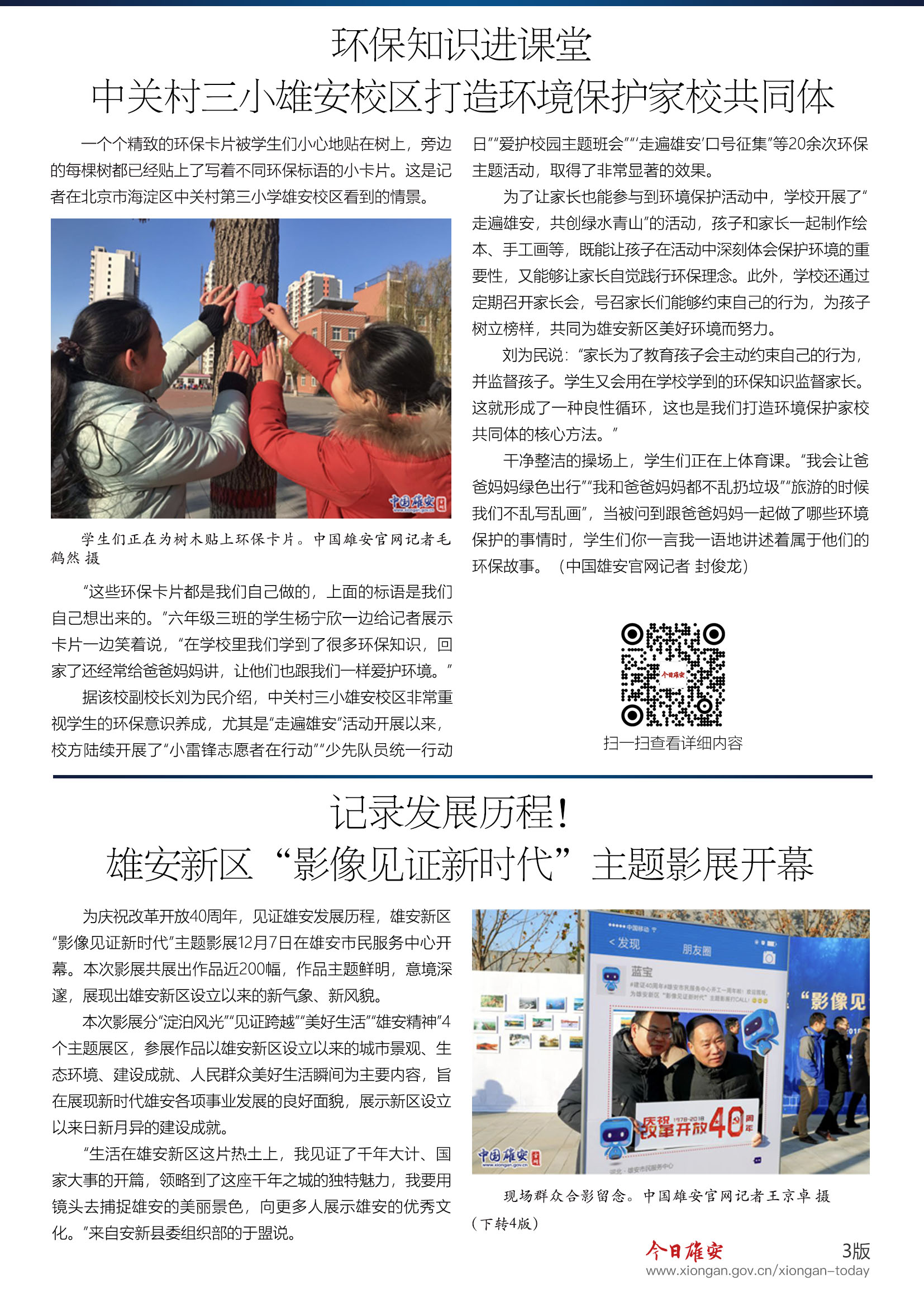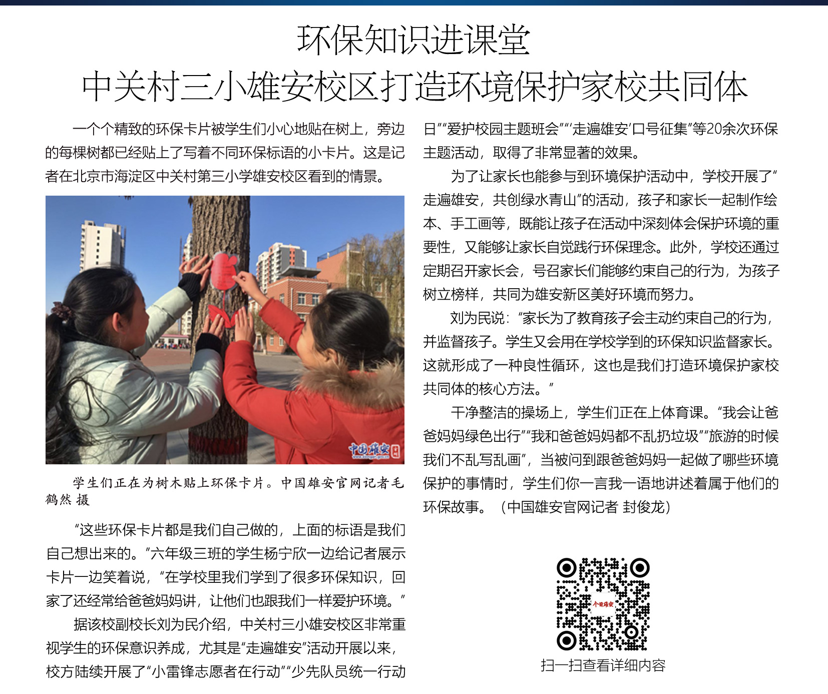 环保知识进课堂 中关村三小雄安校区打造环境保护家校共同体