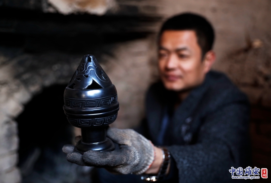 45岁的刘小伟是老匠人刘双喜的儿子,现在刘小伟已逐步接手黑陶厂,希望把黑陶更好地传承下去。中国雄安官网记者张斌 摄