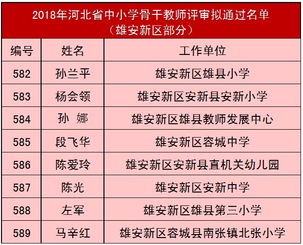 日前,河北省教育厅对2018年省中小学幼儿园骨干教师评审通过人选进行公示,其中雄安新区8人入选,快来看看都有谁吧↓↓↓