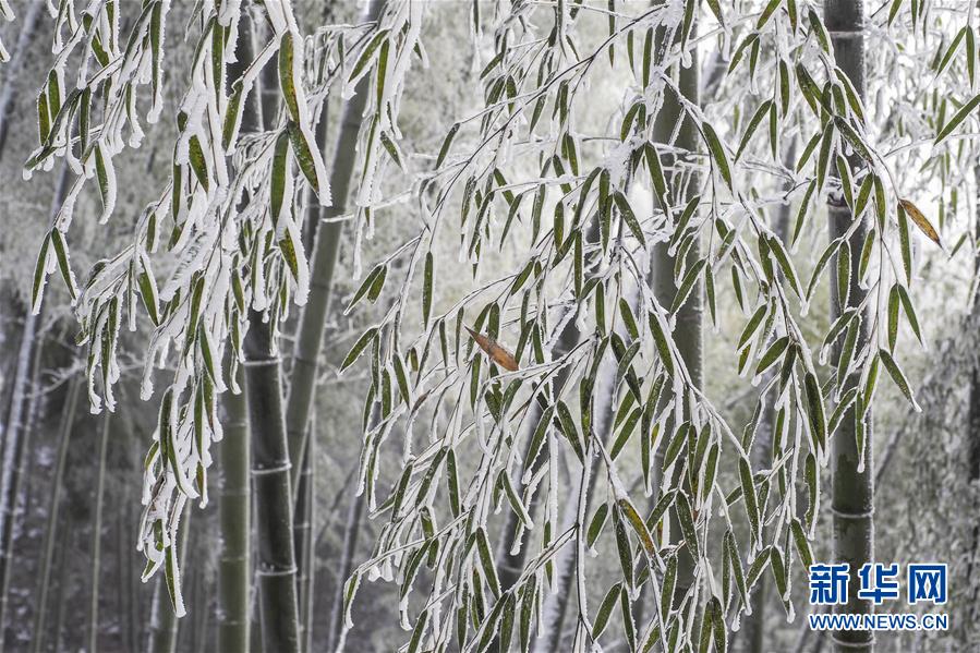 12月11日,吉林市松花江畔出现美丽的雾凇景观,沿江树木披上了洁白的银装。