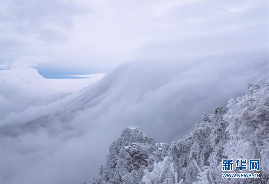 12月14日,江西庐山风景区出现雪后瀑布云。 新华社发(秦永言 摄)