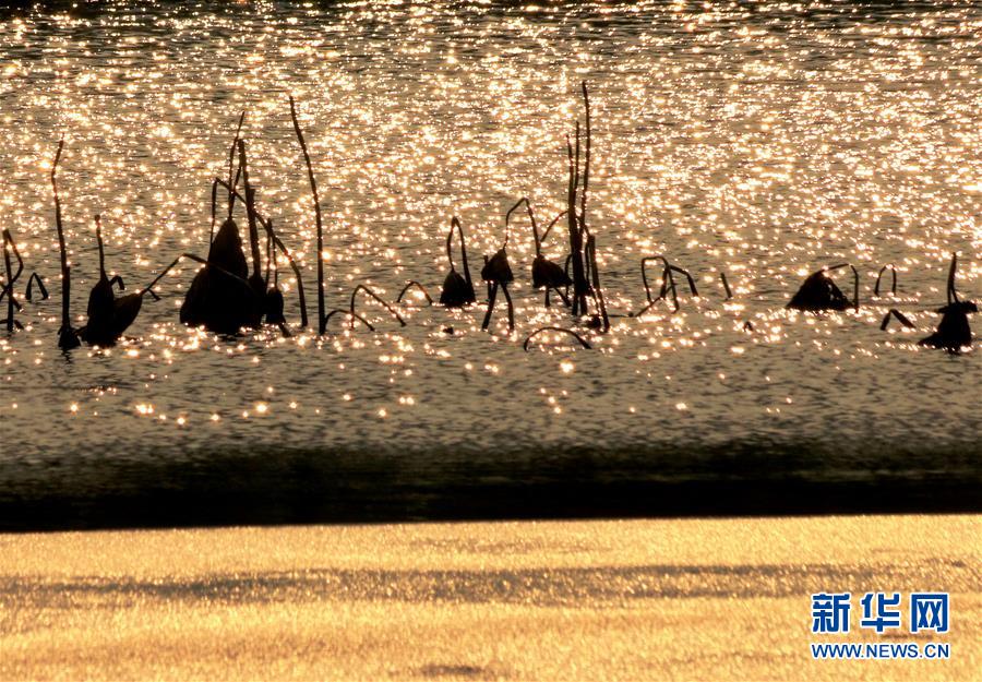 12月11日,在山东省邹城市一湿地公园,残荷挺立在湖面上。 新华社发(王齐胜 摄)