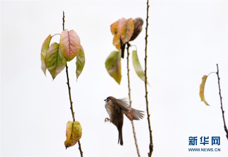 12月7日,在安徽省六安市,一只小鸟在树枝间飞舞。 新华社发(郑金强 摄)