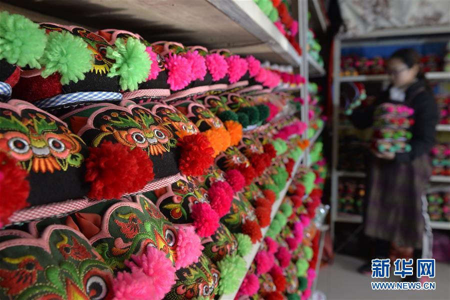 12月14日,河北省任县三北张村一村民为电商客户挑选虎头鞋。 新华社发(陈雷 摄)