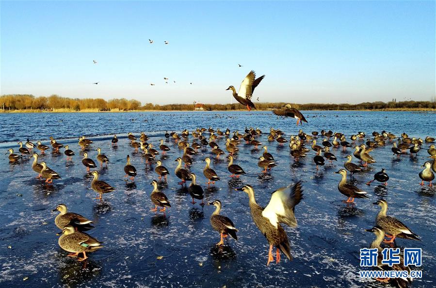河北唐山:水鸟戏南湖