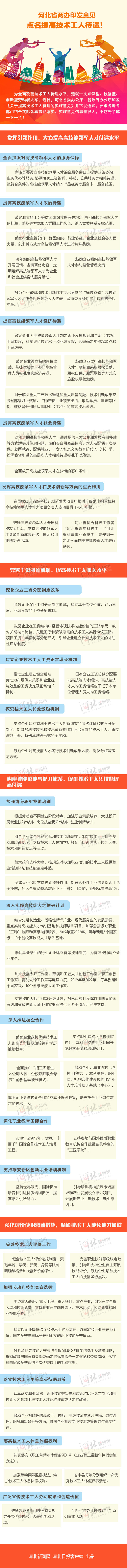 为全面改善技术工人待遇水平,造就一支知识型、技能型、创新型劳动者大军,近日,河北省委办公厅、省政府办公厅印发《关于提高技术工人待遇的实施意见》并下发通知,要求各地各部门结合实际认真贯彻落实。实施意见信息量很大,不妨先了解一下干货!