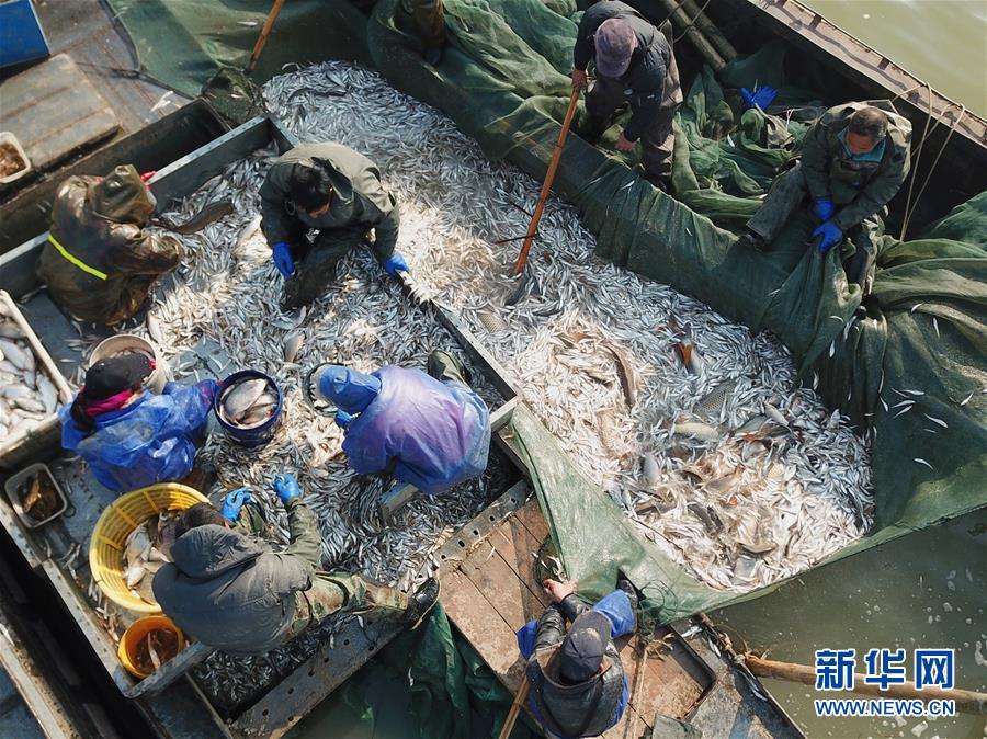 洪泽湖是我国第四大淡水湖。自2011年以来,每年春季都有大量鱼苗被投放到湖中,以改善洪泽湖水域生态环境。进入寒冬捕鱼时节,洪泽湖湖面一派鱼跃人欢的丰收景象。