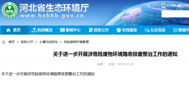 据了解,此次涉危险废物环境隐患排查整治,是落实全省深化安全生产大排查大整治攻坚行动的重点内容之一。河北省涉危险废物行业企业多,且产废种类和数量多。危险废物产生、贮存、运输、处置过程中每个环节,均涉及环境安全保障,直接关系到人民群众的生命财产安全。