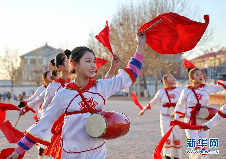 河北省唐山市丰润区东马庄小学舞蹈社团学生在练习腰鼓舞(12月18日摄)。 近年来,河北省唐山市丰润区教育部门把社团活动作为创新和深化未成年人思想道德和身心健康建设的重要途径,在全区中小学相继组建了陶艺、书画、舞蹈、皮影、足球等各种社团1000余个,让孩子们在推进素质教育的过程中快乐成长。 新华社记者 牟宇 摄