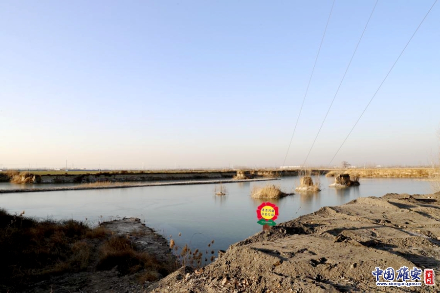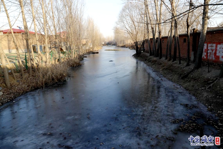 杨孟庄排碱沟清澈的水已经冻上了厚厚的一层冰。中国雄安官网记者毛鹤然 摄
