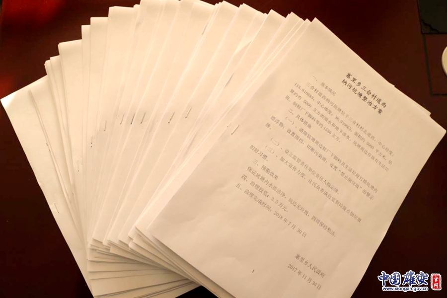 雄安新区安新县寨里乡各纳污坑塘整治方案。中国雄安官网记者毛鹤然 摄