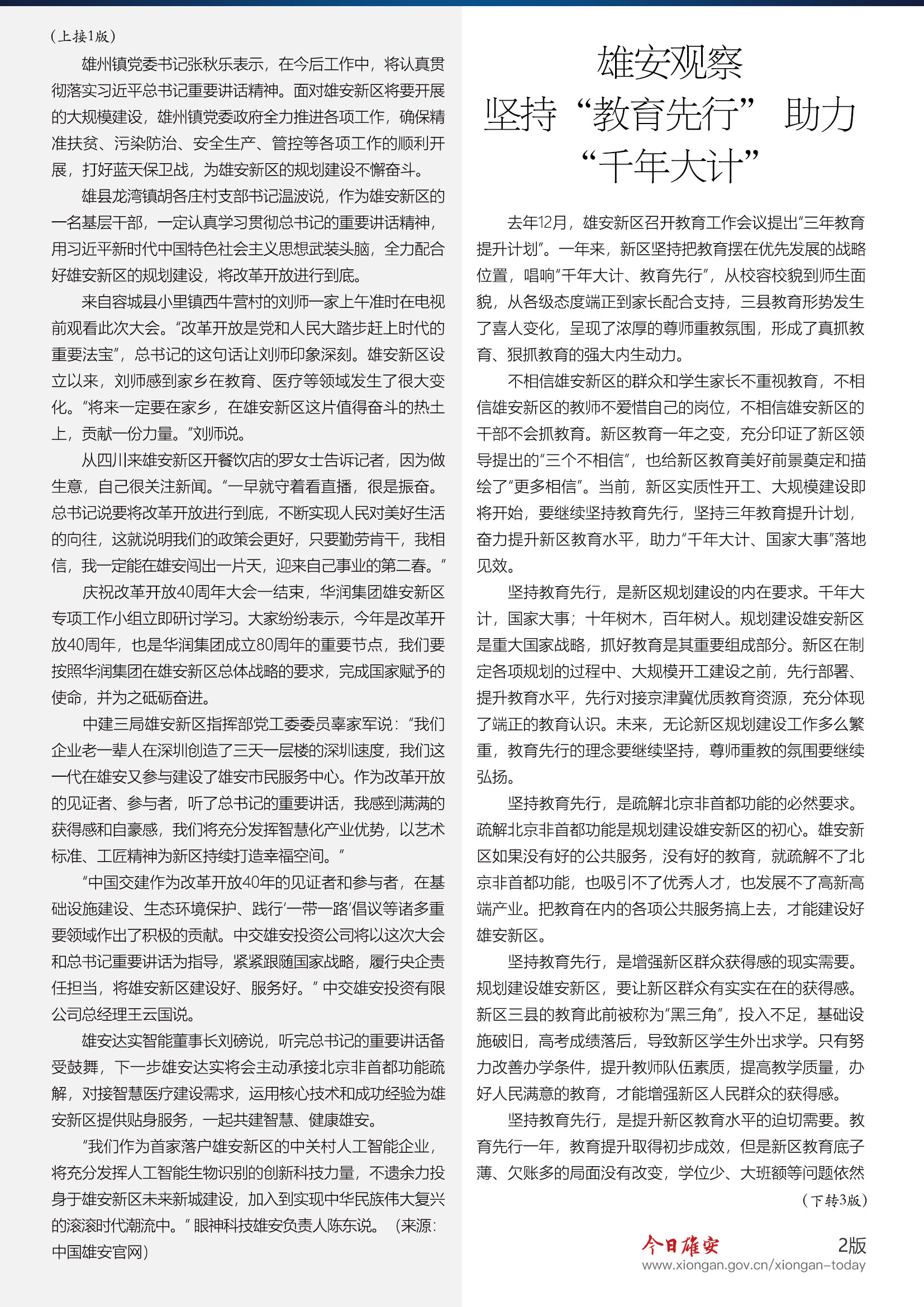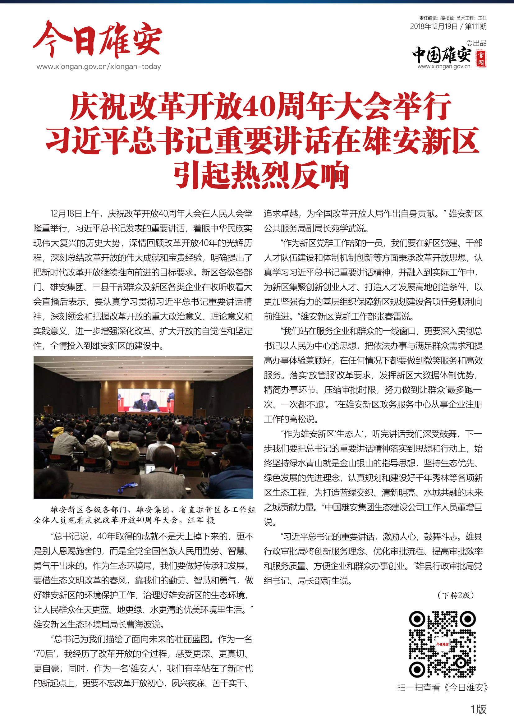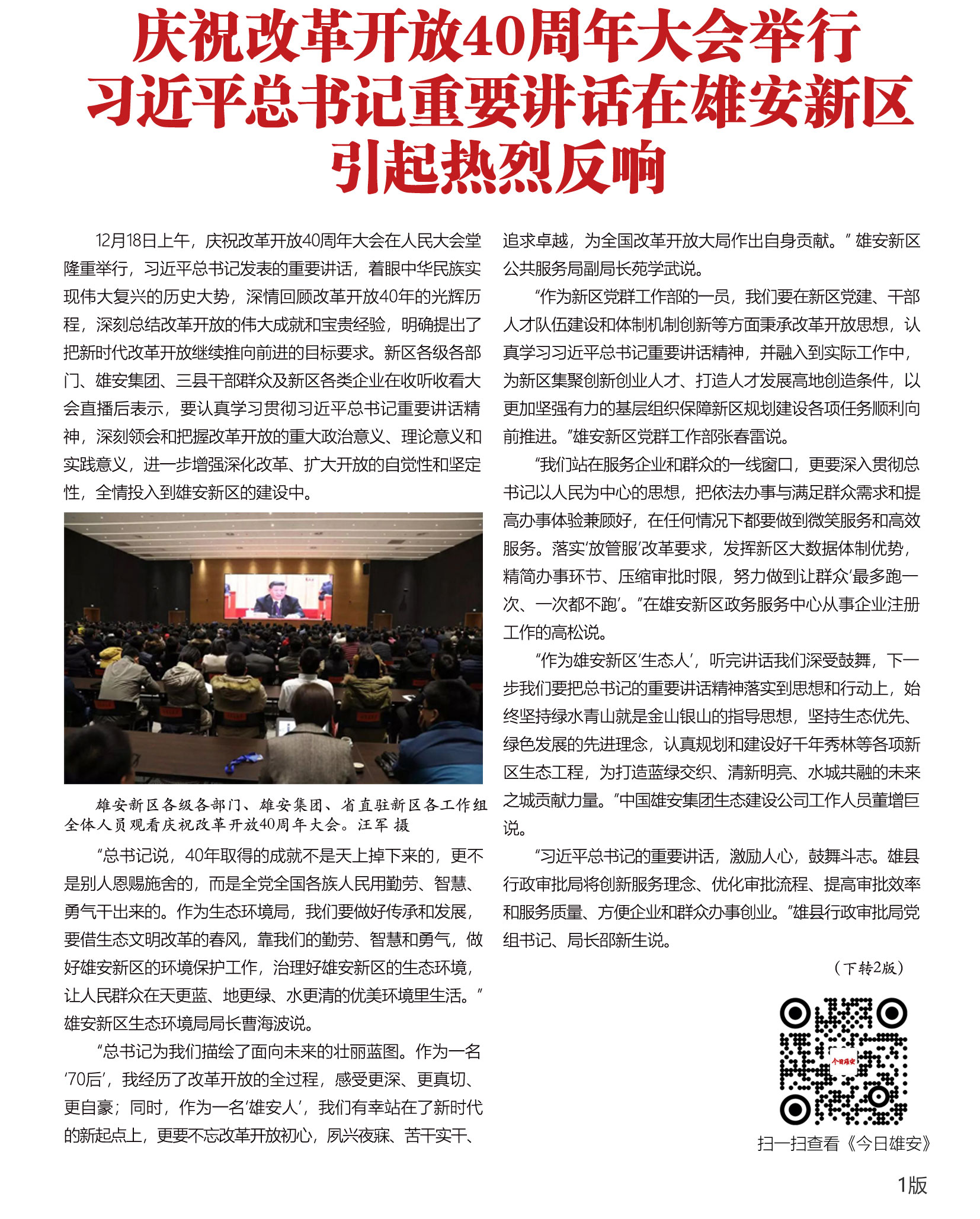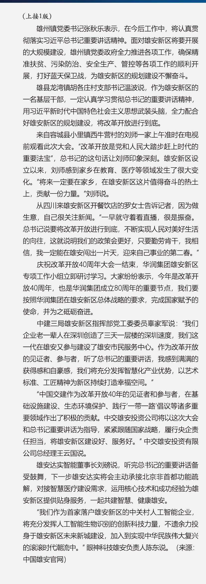 庆祝改革开放40周年大会举行 习近平总书记重要讲话在雄安新区引起热烈反响