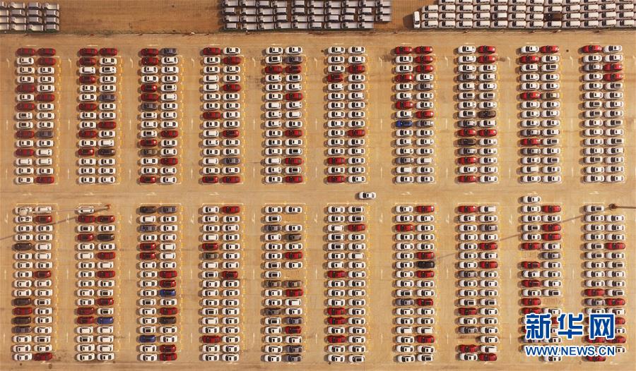 2018年8月20日,重庆果园港内停放着等待运输的汽车。大地之色,俯仰之间;壮美山河,是我的祖国。2018年,新华社记者操纵无人机“飞阅”华夏大地,在最美的时节,定格下她的色彩斑斓。新华社记者 王全超 摄