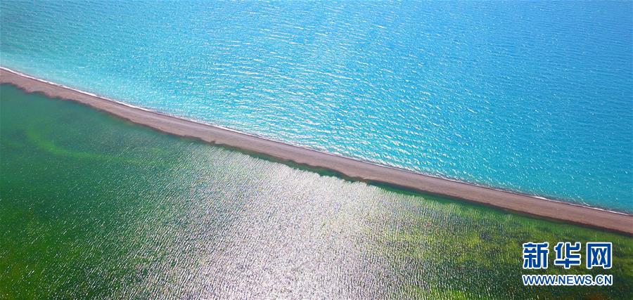 这是2018年7月18日航拍的新疆赛里木湖风光。大地之色,俯仰之间;壮美山河,是我的祖国。2018年,新华社记者操纵无人机“飞阅”华夏大地,在最美的时节,定格下她的色彩斑斓。新华社发(许丛军 摄)