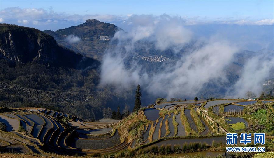 这是云南省红河州元阳县的哈尼梯田美景(12月18日摄)。