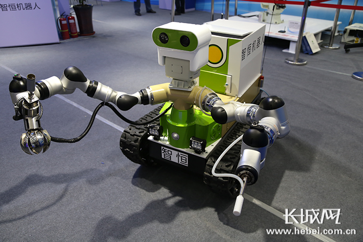 环保应急侦测特种机器人。记者 周亚彬 摄