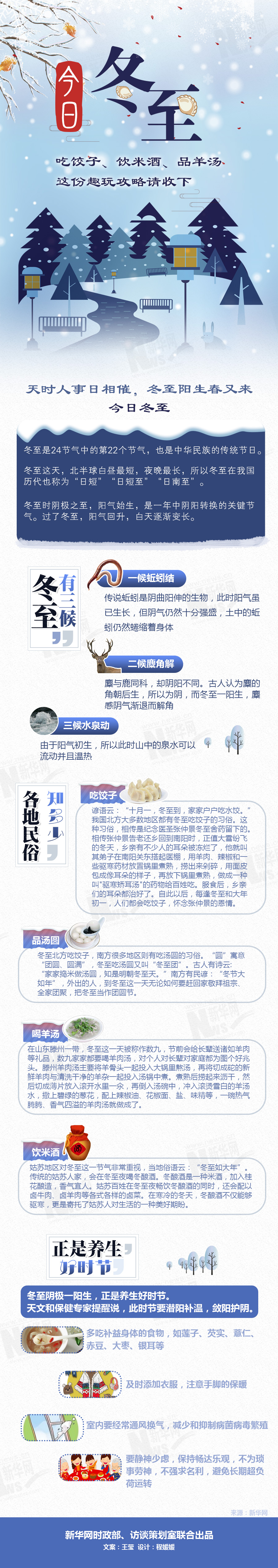 冬至是我国二十四节气之一,是中华民族的传统节日,源于汉代,盛于唐宋,相沿至今。冬至这天,北半球白昼最短,夜晚最长,所以冬至在我国历代也称为“日短”“日短至”“日南至”。