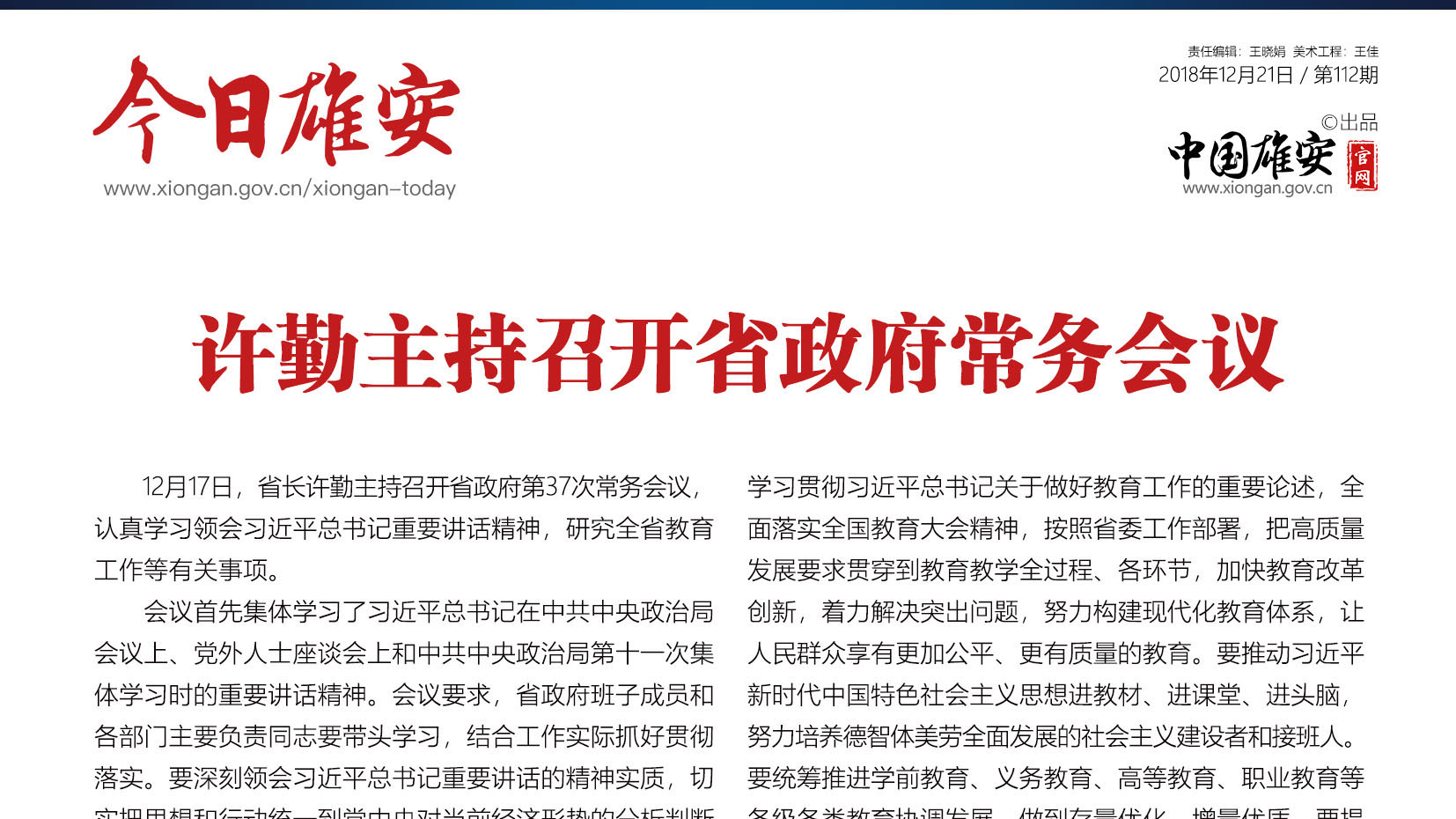 《今日雄安》 2018年12月21日 第112期