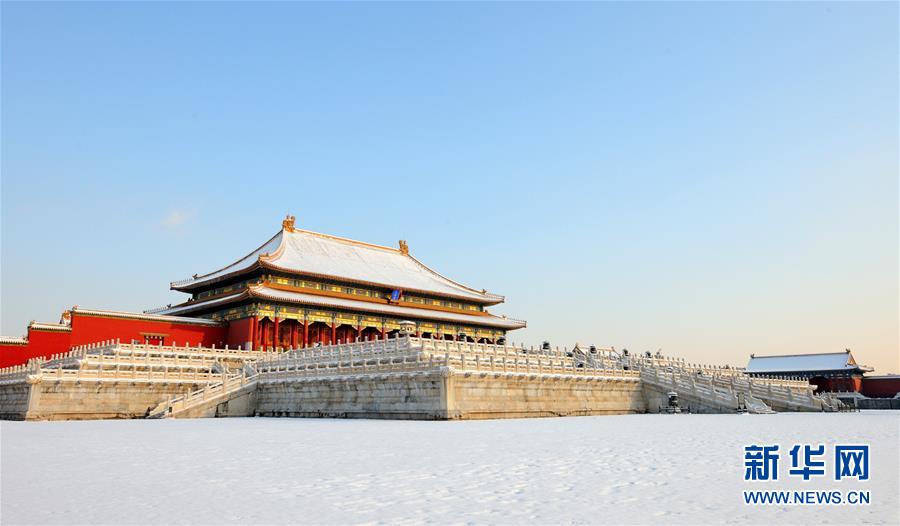 这是雪后的故宫太和殿(资料照片)。冬日的故宫,既有大气庄重的美丽,也有灵动肆意的生气。新华社发(故宫博物院供图)