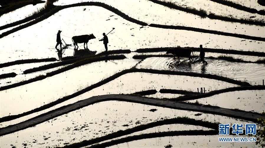 4月10日清晨,湖北省蕲春县雾云山村的农民在梯田劳作。 在即将过去的2018年,各地摄影师用镜头记录下四季中国。大江南北,一幅幅色彩斑斓的美丽画卷徐徐展开。 新华社记者 程敏 摄