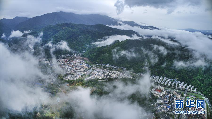 新青川县城(4月25日无人机拍摄)。汶川地震10周年之际,记者重访当年重灾区的四川省青川县。 在即将过去的2018年,各地摄影师用镜头记录下四季中国。大江南北,一幅幅色彩斑斓的美丽画卷徐徐展开。 新华社记者陶明摄