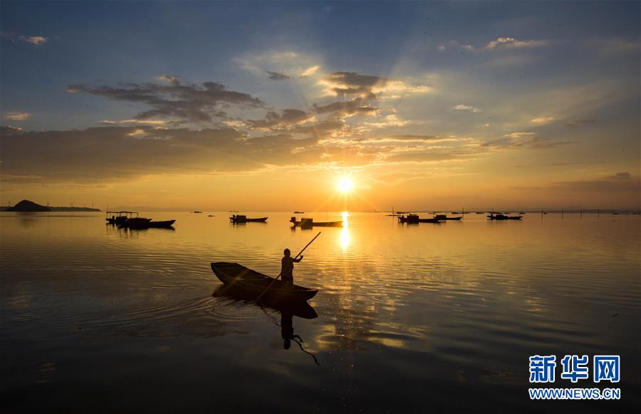 8月28日傍晚,在江西鄱阳湖都昌矶山水域,渔民荡舟湖上。 在即将过去的2018年,各地摄影师用镜头记录下四季中国。大江南北,一幅幅色彩斑斓的美丽画卷徐徐展开。 新华社发(傅建斌 摄)