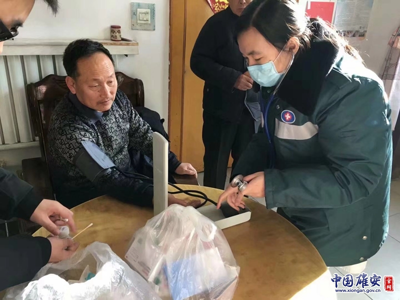 义诊医生走进容城县张市村村民杨金锁的家为他免费体检、送药。容城县妇幼保健院供图