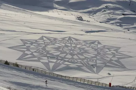 踩雪不稀奇,稀奇的是踩出花儿来!“雪艺家”Simon Beck就做到了。不过这么浩大的工程可不是短时间内就可以完成的。一幅较为复杂的几何图画,需要每天走上5到9个小时。如果有兴趣,不妨来试一下!