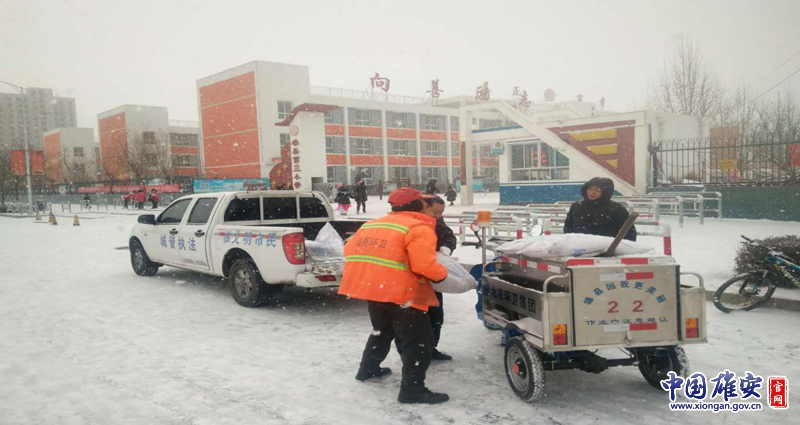 中国雄安官网12月26日电(记者封俊龙)2018年12月26日上午,雄安新区雄县突降大雪,雄县住房和城乡建设局城管大队立即启动应急预案,开展化雪除冰工作。
