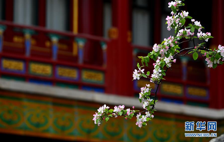 这是故宫内的海棠花(资料照片)。故宫内的花草树木种类繁多。漫步紫禁城,总能在不经意间遇见红墙琉璃瓦映衬下的一抹姹紫嫣红。新华社发