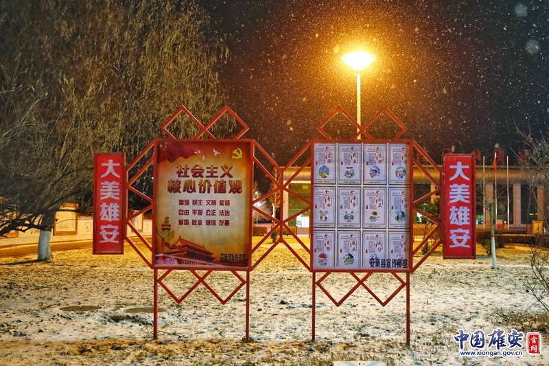 安新县白洋淀文化广场夜幕下的美丽雪景。中国雄安官网记者毛鹤然 摄