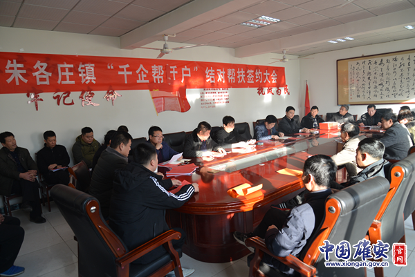 为确保扶贫脱贫工作精准推进,进一步加大产业扶贫力度,雄县县委、县政府决定在全县开展企业带动、贫困户参与的“千企帮千户”活动。近日,雄安新区雄县朱各庄镇在全县率先召开“千企帮千户”结对帮扶签约大会,安排部署相关工作,号召爱心企业积极认领帮扶对象,为全镇扶贫攻坚作出贡献。参会的19家企业积极响应号召,116户贫困户被全部认领帮扶。