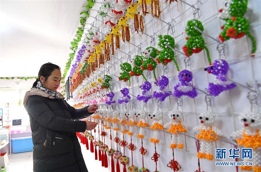 12月28日,在辛集市田家庄乡子曰庄村,村民整理手工艺品。