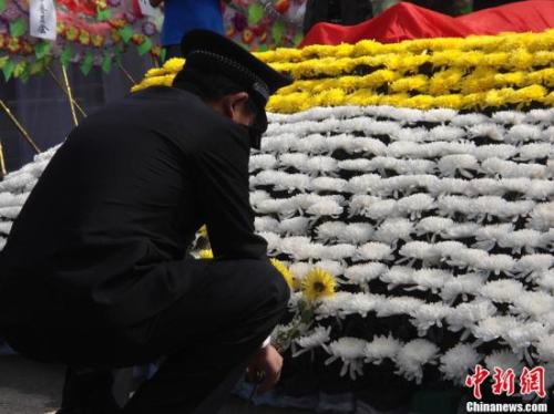 资料图:牺牲民警同事献花寄哀思。中新社发 顾一航 摄