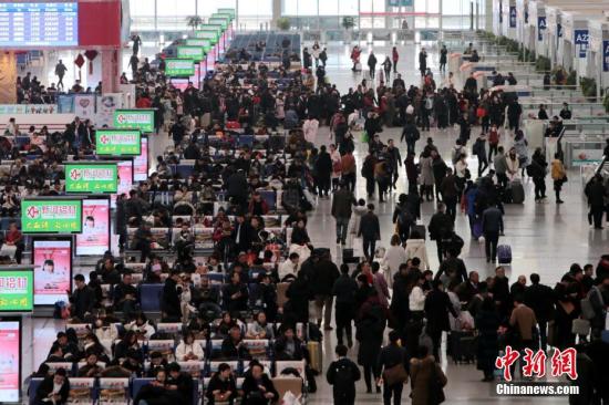 资料图:高铁已开售春运车票,车站内人头攒动。中新社记者 张远 摄