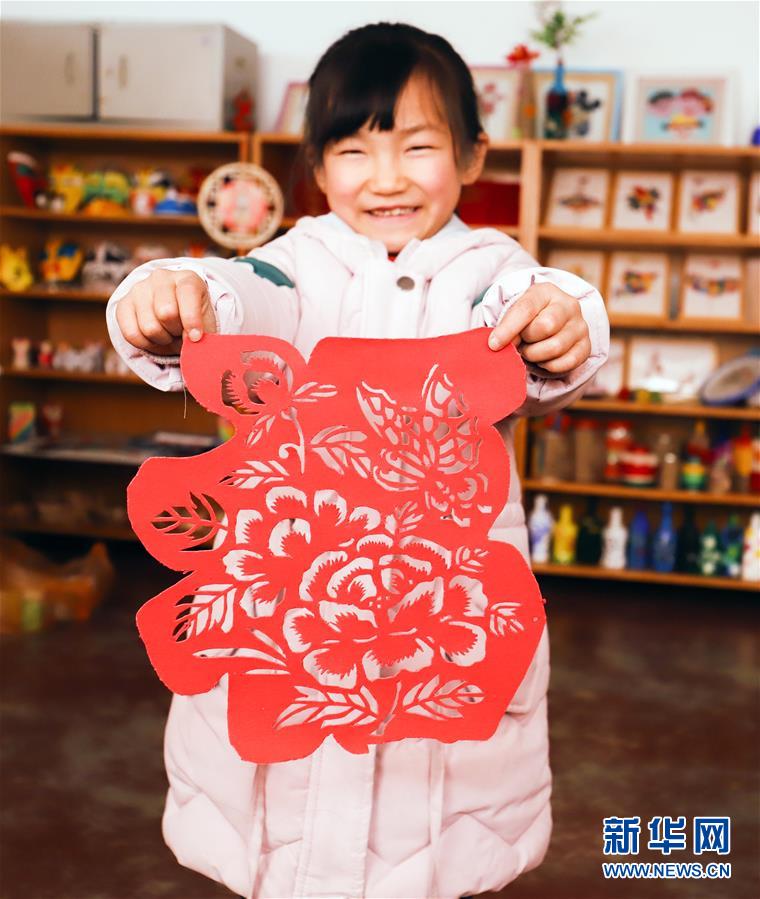 12月29日,河北唐山遵化市特殊教育中心的学生在展示剪纸作品。新年临近,人们以各种各样的方式迎接新年,表达对新年的祝福。新华社发(刘满仓 摄)
