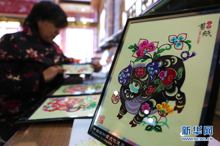 12月29日,在河北省承德市俊凤剪纸创作室,剪纸艺人石俊凤在装裱贺岁剪纸作品。新年临近,人们以各种各样的方式迎接新年,表达对新年的祝福。新华社发(刘环宇 摄)