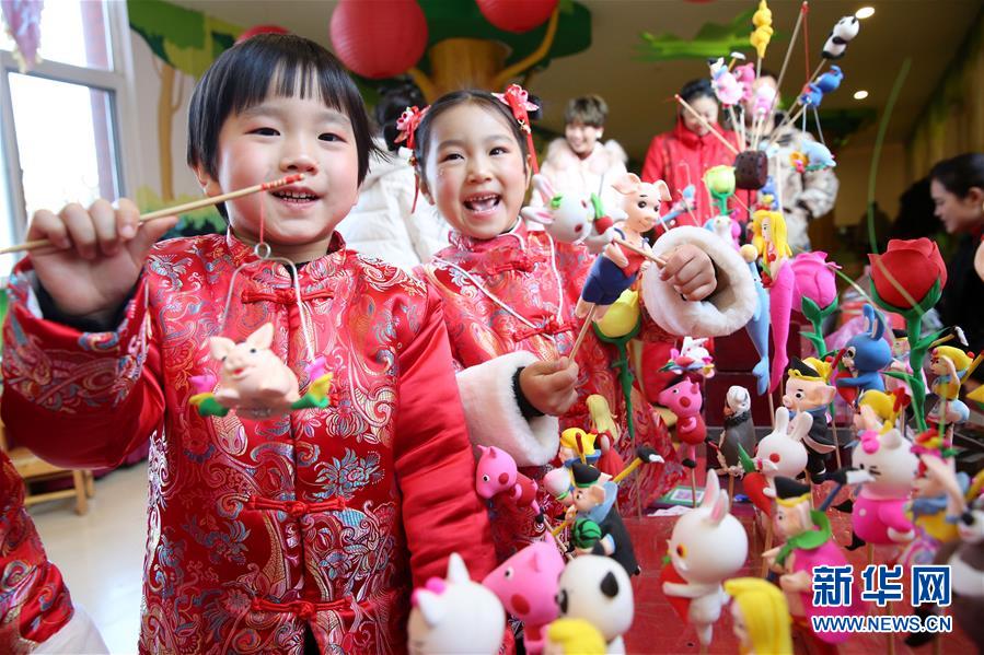 12月29日,安徽省淮北市凤凰幼儿园的孩子们在民俗迎新年活动中体验传统捏面人。新年临近,人们以各种各样的方式迎接新年,表达对新年的祝福。新华社发(李鑫 摄)