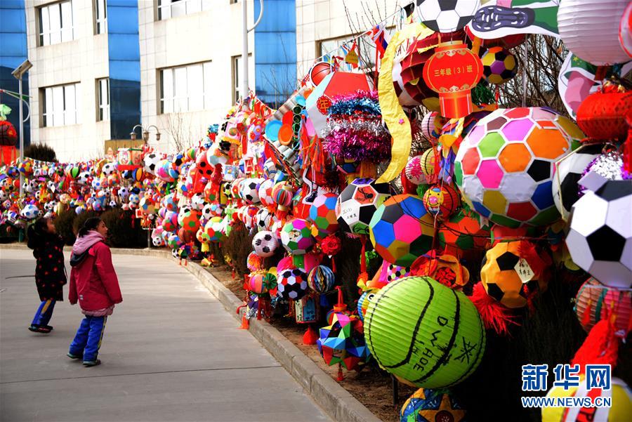 12月29日,在陕西省延安市实验小学“灯笼展 迎新年”校园文化活动上,学生欣赏各种造型的灯笼。新年临近,人们以各种各样的方式迎接新年,表达对新年的祝福。新华社发(王福建 摄)