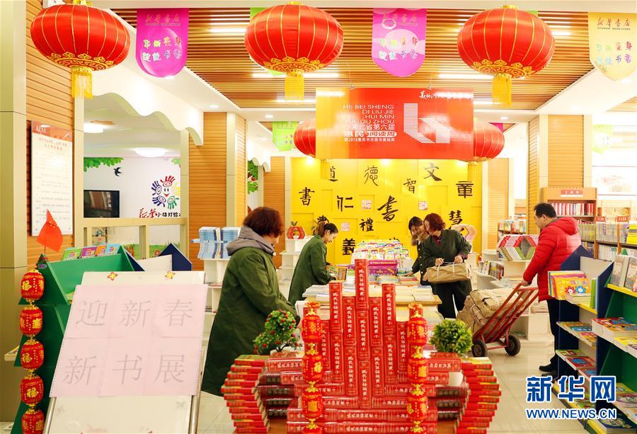 12月29日,在河北石家庄井陉县新华书店,工作人员在布置新年新书展览。新年临近,人们以各种各样的方式迎接新年,表达对新年的祝福。新华社发(张秀科 摄)