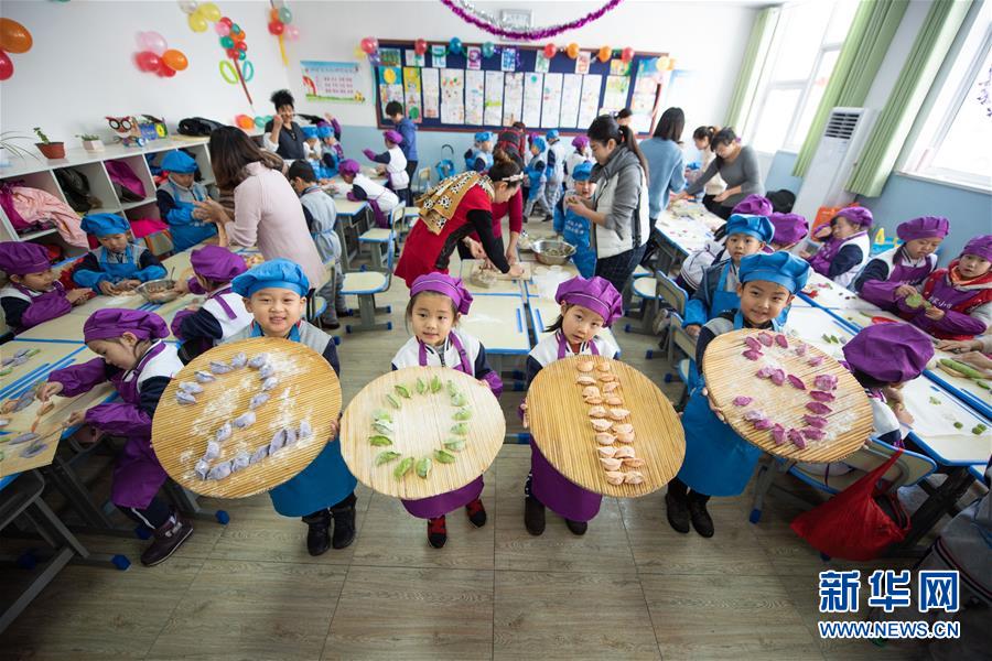 12月29日,在山东省烟台市刘家小学,小学生用饺子组成“2019”字样,迎接2019年的到来。新年临近,人们以各种各样的方式迎接新年,表达对新年的祝福。新华社发(初阳 摄)