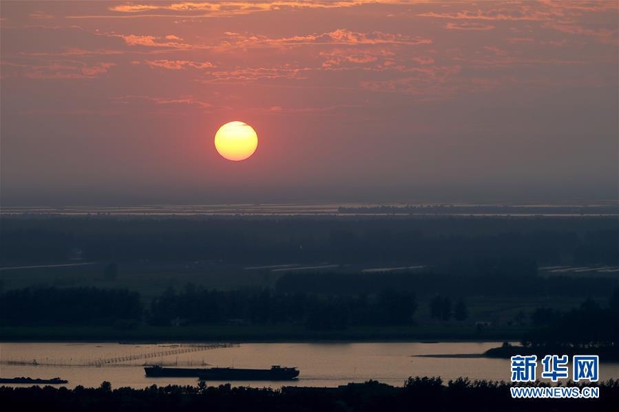 2019年1月1日,新年阳光照射在江苏省盱眙县淮河水面上。当日是新年第一天,朝阳升起,万象更新。新华社发(周海军 摄)