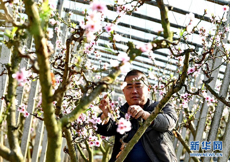 数九寒天,河北省乐亭县的2.7万余亩设施桃大棚内的桃花竞相绽放。近年来,河北省乐亭县大力发展设施桃种植,年产大棚桃达5.4万吨,成为增加农民收入的特色主导产业。新华社记者杨世尧摄