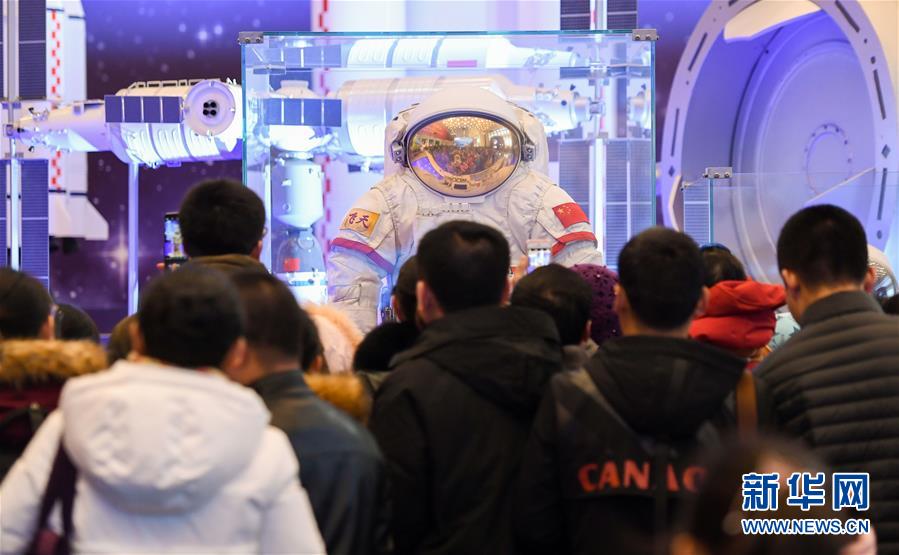 1月1日,观众在展览上参观舱外航天服。当日是2019年元旦,大批观众来到中国国家博物馆参观“伟大的变革——庆祝改革开放40周年大型展览”,截至当日,累计参观人数超过240万人次。新华社记者 陈晔华 摄