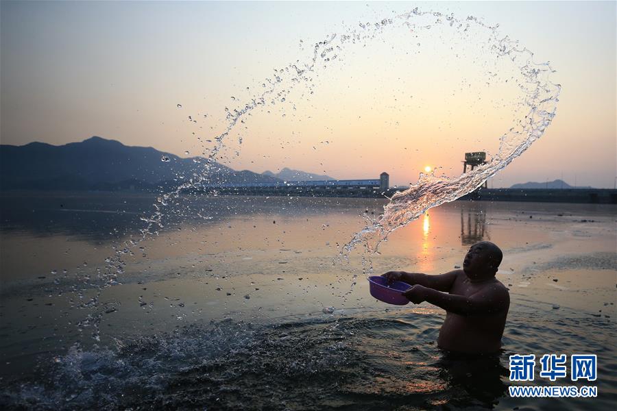 2019年1月1日,河北省迁西县的冬泳爱好者在冰水中迎接新年第一天。