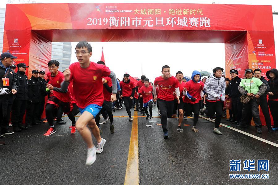 2019年1月1日,湖南衡阳市民参加元旦环城赛跑活动。