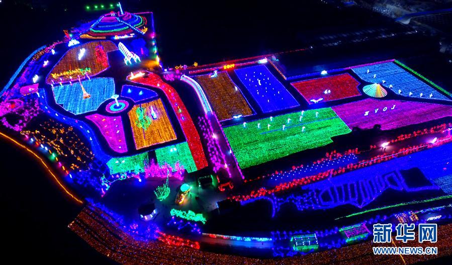 这是12月31日在河北省邯郸市拍摄的“跨年迎春”灯展(无人机拍摄)。新年小长假期间,各地举办迎春灯展活动,喜迎新年。新华社记者王晓摄