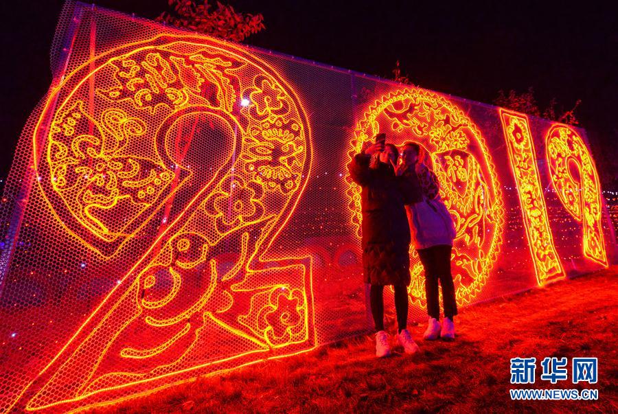 12月31日,游客在河北省邯郸市“跨年迎春”灯展上拍照留影。新年小长假期间,各地举办迎春灯展活动,喜迎新年。新华社记者王晓摄