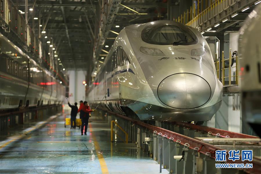 1月3日,贵阳北动车所工作人员对动车组进行巡检和保洁,为铁路调图做好安全保障。记者从中国铁路总公司获悉,自2019年1月5日起,全国铁路将实施新的列车运行图。新华社发(吴吉斌 摄)