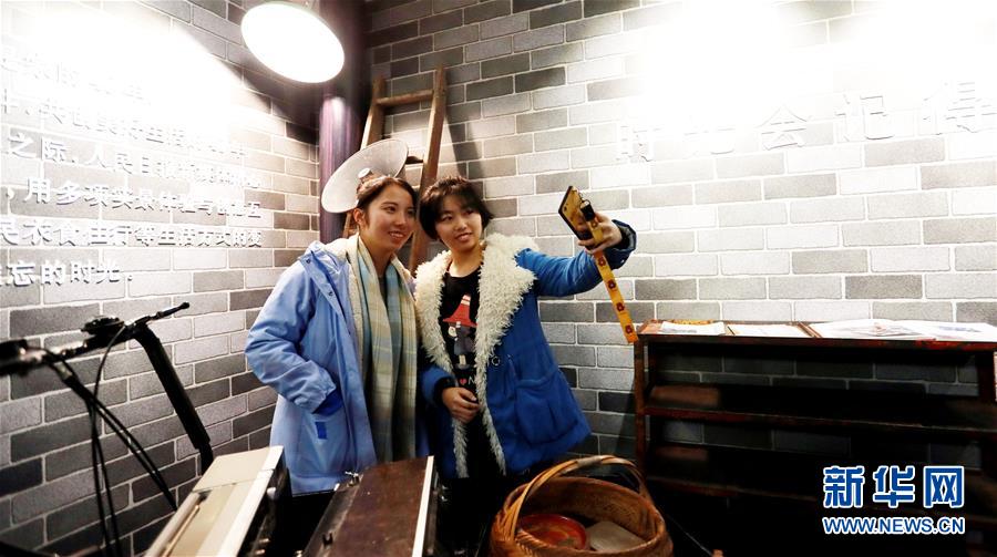 1月5日,两名观众在中国国家博物馆内的“时光博物馆”参观拍照。